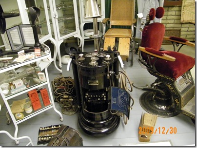 Across from the state prison exhibit was this contraption that we all thought was probably an apparatus used for torturing prisoners.  Negative.  It's a permanent hair curling machine.  Torturous, I'm sure.  The price women pay for beautification!hair curlers for giving a perm