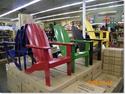 Snookie and I made plans to meet at the Promenade Shopping Center in front of Penney's. We had a great time visiting over lunch at Mimi's. Then we hit a few shops. Here, we were in the World Import store. Snookie's trying to figure out where one would use a table with different length legs. Sure would be treacherous for me to sit in the chair on the box. Ah! Snookie finally read the info: ADJUSTABLE legs. (We don't shop much... both full-time RV'ers) ;~/