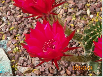 Can't believe such large flowers are produced by such a small cactus... not red.