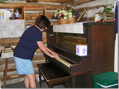 We got a great idea for a pulpit for the ranch! A three legged tree trunk section. Perfect. Don is signing the guest registry. There was even a basket for our offering with gifts already there. Others had been here before us.