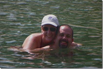 Camden loves to be tossed in the air to fall into the water. Lydia gets a work-out!
